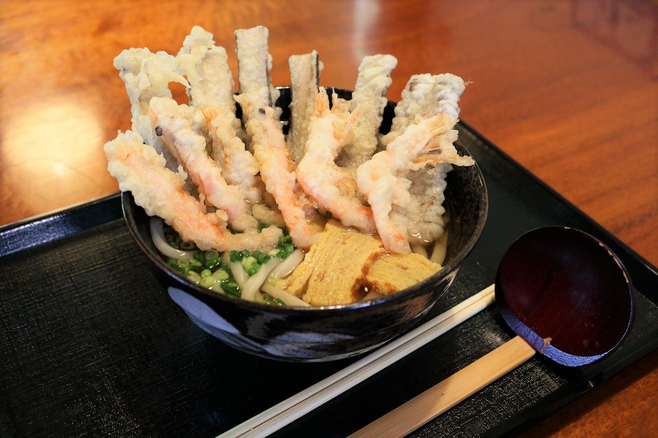 当店自慢の「海鮮うどん」はその名の通り、海老や浅利をはじめ豊富な海鮮を使用。数種類もの海の幸の味が染みわたる一品となっております。また、一日数食限定で特上海鮮うどんをご提供。数種類の海鮮と大きな海老を一匹丸々使用し、海鮮の味を贅沢に味わうことができる一杯をご提供しております。他にも海老天や穴子天の追加トッピングなども可能ですので、自分だけのオリジナル海鮮うどんを作ることも。