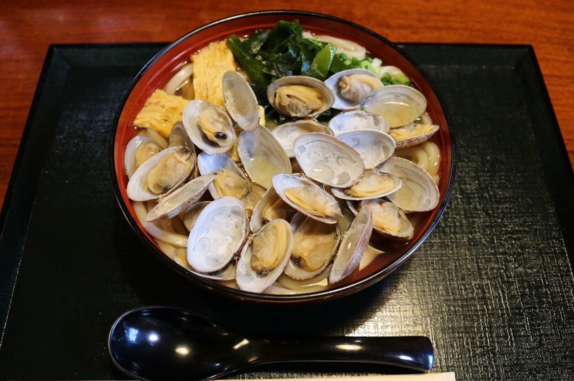 当店のうどんは出汁を効かせず、素材の味を活かせるよう薄味に仕上げています。薄味の和風だしにトッピングした具材本来の味が染みわたり、様々な海鮮やお肉、野菜など具材の旨味をより一層味わっていただけることが「三日月庵のうどん」の特徴です。特に浅利うどんは浅利本来の味が広がる、当店の看板メニューでもあります。